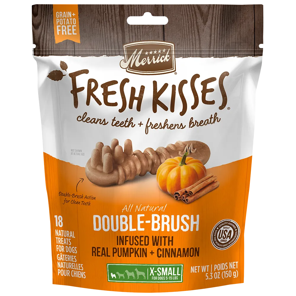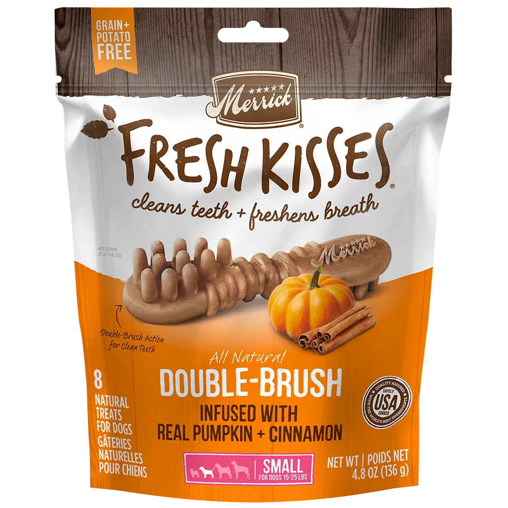 Dog treats are an important, but often fun part of owning a dog. Each treat type can provide a different role in your dog’s life. Small treats are effective as a tasty reward to reinforce good behavior from your dog while training. Fresh Kisses dental treats can help clean your dog’s teeth while freshening their breath at the same time. You can also find a wide variety of flavored and textured treats to give your dog yummy rewards to enjoy. Browse our selection to find the best dog treats for your special pup.