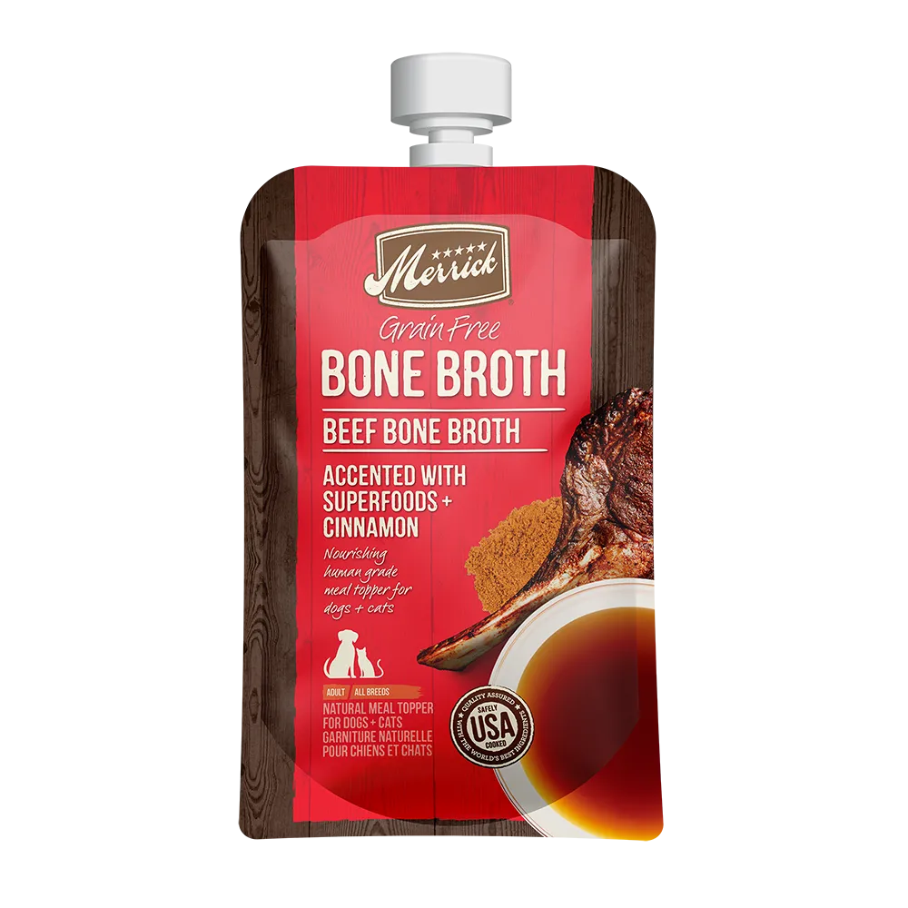 Dog parents love using dog food toppers to add a little something extra to their dog’s mealtime. An easy way to enhance your dog’s meal is with Merrick Bone Broth. Enhanced with spices including parsley and cinnamon, turmeric, or ginger, bone broth adds moisture to your pet’s diet and adds a flavor boost to your dog’s kibble. Backcountry Meal Mixers are another great option as food toppers for dogs. These grain free mixers make the perfect treat or topper to your dog’s favorite Merrick recipes. These freeze-dried raw pieces taste great. Browse our flavor options and find the best dog food topper for you and your pet.