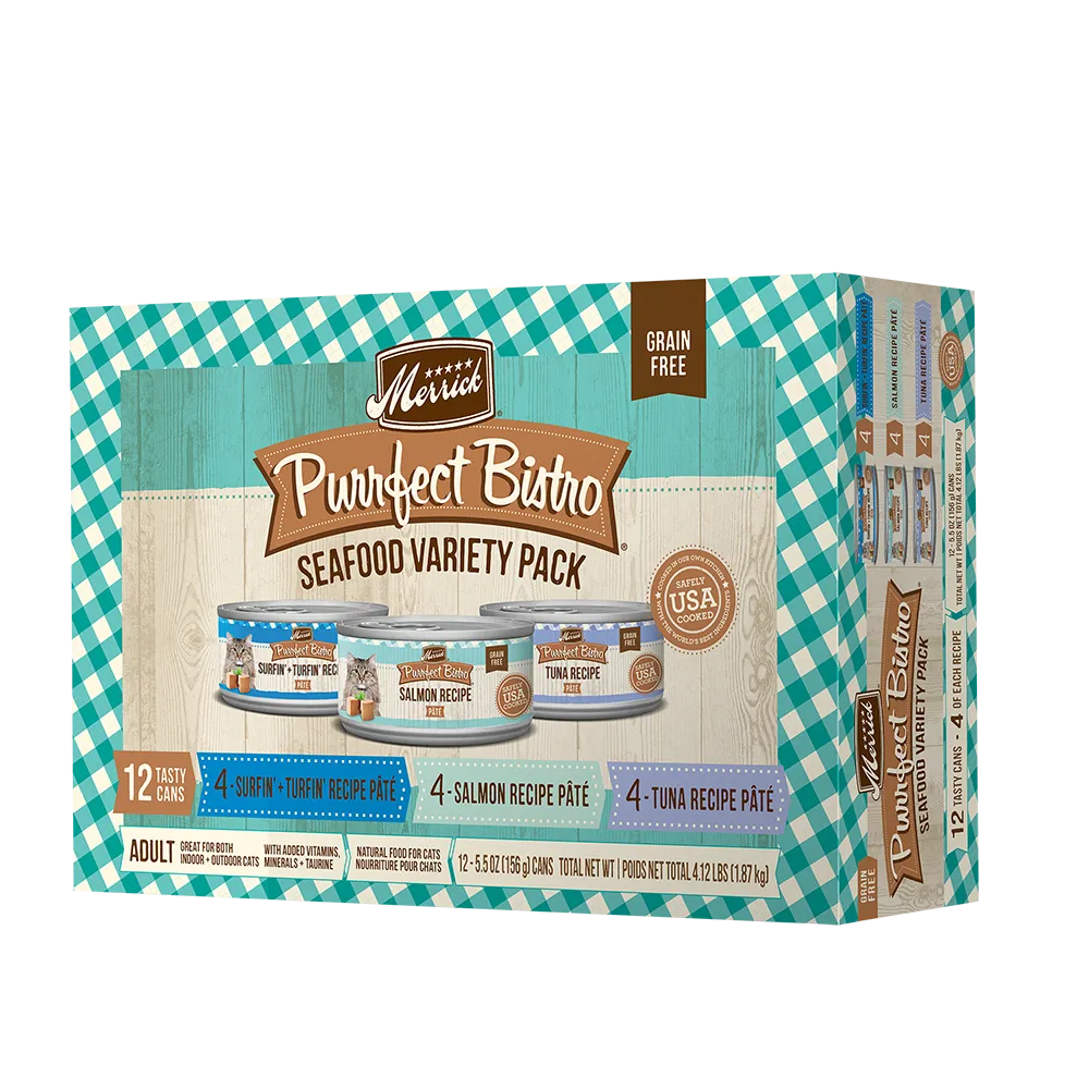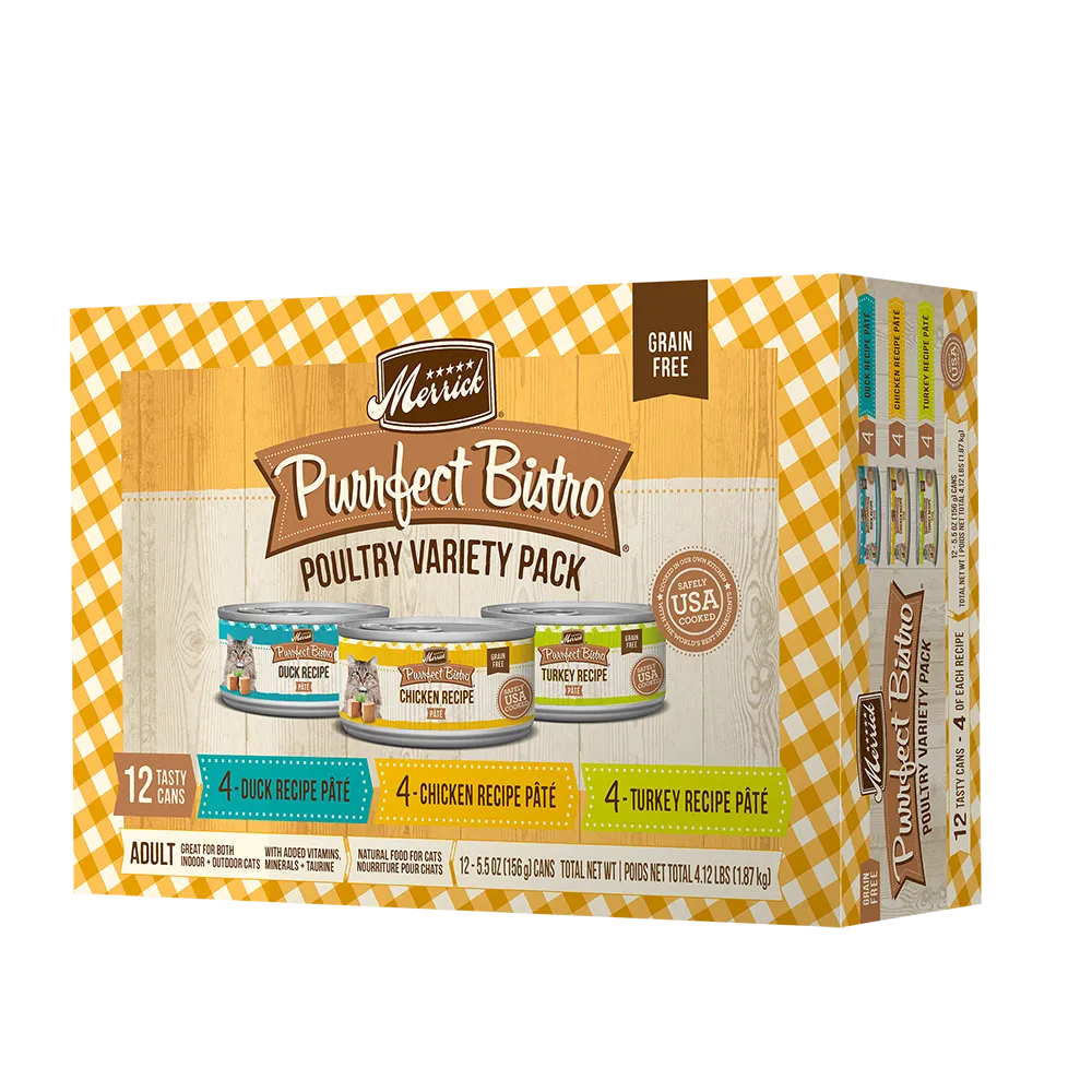 Merrick has crafted a variety of wet and dry cat foods that are excellent options for your adult cat’s everyday feeding. Dry cat food recipes are great for cats that like to graze throughout the day. The crunchy kibble also helps clean teeth when chewing. Merrick also has multiple types of wet food that provide great meal options for your cat. Pates are an excellent wet cat food choice as they have a smooth texture making it easy for your cat to devour. Merrick also offers Purrfect Bistro Soirees that are crafted with tender morsels in a delicate sauce to give your cat a fine dining experience. Merrick Backcountry recipes offer meaty morsels in gravy that are in convenient, single-serving pouches. Merrick’s Purrfect Bistro, Limited Ingredient Diet, and Backcountry options are all crafted with high quality protein in every bite. Browse all of our adult cat food recipes and find the best cat food for your adult cat.