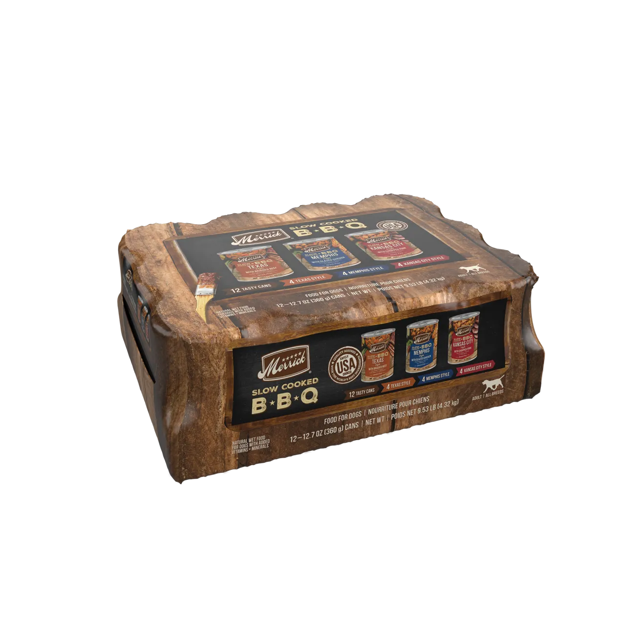 Tantalize your dog’s taste buds with Merrick Slow-Cooked BBQ Wet Dog Food recipes. Real deboned meat or poultry is always the first ingredient to provide your dog with food that is high in protein. These grain free recipes are made with real vegetables for your dog to enjoy. Savory broth is also included to add more flavor and moisture to your dog’s diet. Try our different Slow-Cooked BBQ recipes today to find your dog’s favorite flavor.