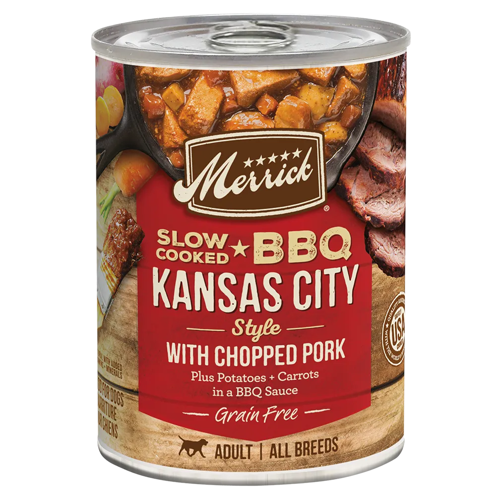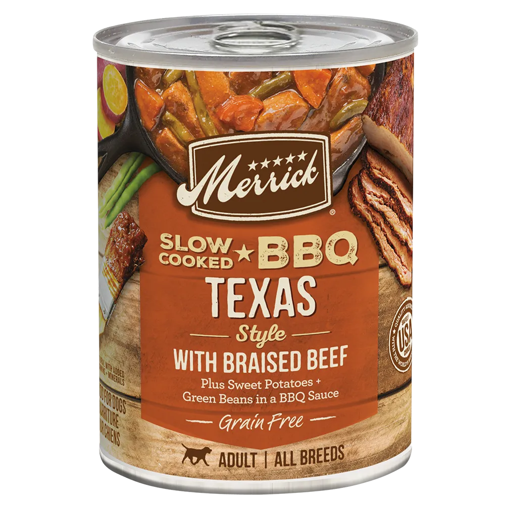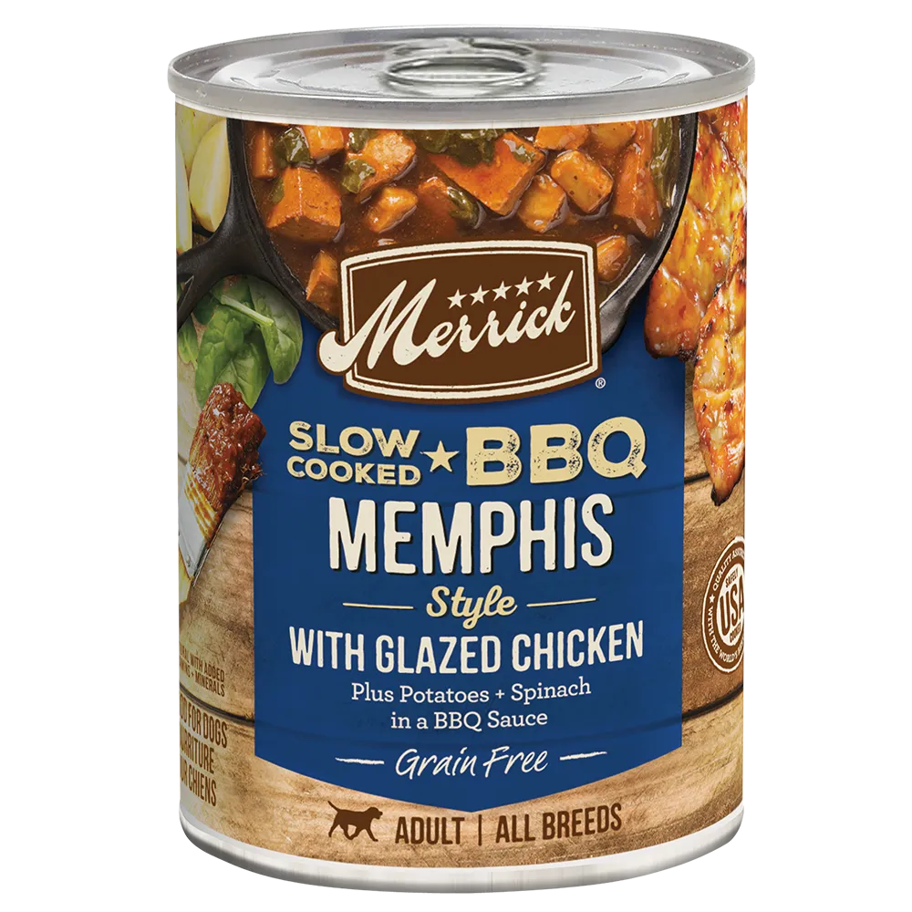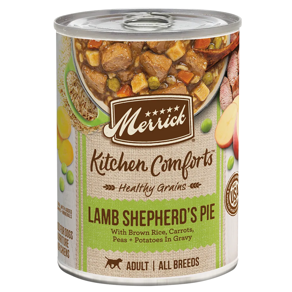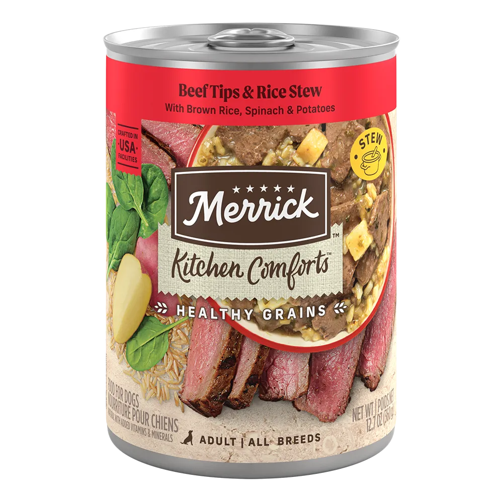 Wet dog food is often a great option for your pet to give them a deeper variety of textures and flavors in their food. This food type also has a variety of valuable uses, whether it be used as a whole meal or to add some moisture and hydration to dry food diets. Find recipes that match your dog’s nutritional preferences with healthy grains or grain free options available. Small breed wet food recipes are crafted in smaller-sized portions that add hydration and flavor to your little dog’s diet. There are wet food options for puppies who require extra protein and nutrients for growth and development. Senior dogs can also enjoy our wet recipes, which provide an excellent option for those that may require soft dog food. At Merrick, we provide a variety of wet food options that are nutritious and delicious while still having the convenience of canned dog food. Browse our variety of options to find the best wet dog food for your pet.